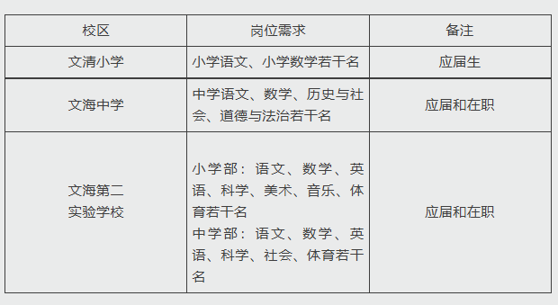 特别说明:钱塘区教育系统公办中小学事业编制教师招聘由钱塘区教育局统一组织。文海教育集团本次预招聘工作将严格按照钱塘区教师招聘政策执行,招聘时间、地点、对象范围及条件等以钱塘区教育局发布的招聘公告为准,敬请关注。
